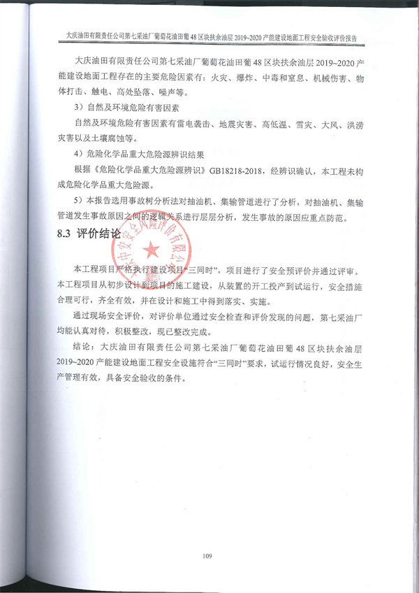 大慶油田有限責任公司第七采油廠葡萄花油田葡48區塊扶余油層2019~2020產能建設地面工程安全設施符合“三同時”要求,試運行情況良好,安全生產管理有效,具備安全驗收的條件 |