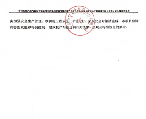 中國石油天然氣股份有限公司長慶油田分公司隴東油氣開發分公司2024年頁巖油產能建設工程(補充)建設方案采取的安全技術措施和安全設施符合國家相關法律、法規、標準、規范的要求。采用的工藝方案和集輸方案安全可行。建設單位應在其今后的設計、施工和運行中進一步落實本工程方案提出的安全技術措施和本次預評價提出的補充安全措施,切實保證工程安全設施和主體工程的“三同時”,并在工程竣工投產后切實加強安全生產管理,以實現工程安全、平穩運行,采取安全對策措施后,本項目危險有害因素能夠得到控制,建成投產后能達到有關法律、法規及標準規范的要求。 |
