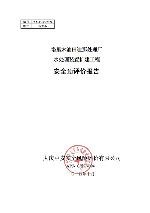 塔里木油田迪那處理廠水處理裝置擴建工程安全預評價報告 |