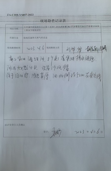 大慶油田有限責任公司第七采油廠永樂油田葡362區塊葡萄花油層產能建設地面工程安全驗收評價 |