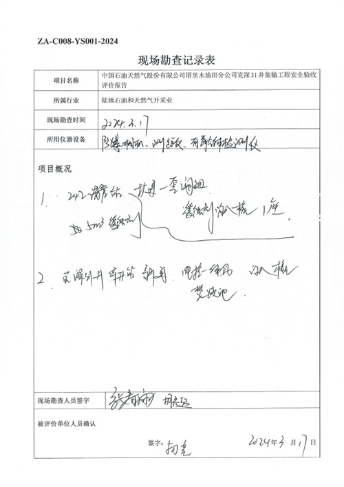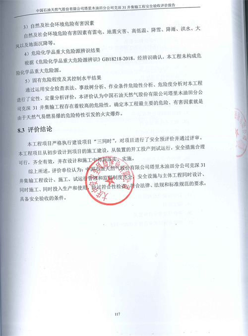 中國石油天然氣股份有限公司塔里木油田分公司克深31井集輸工程安全驗收評價報告 |