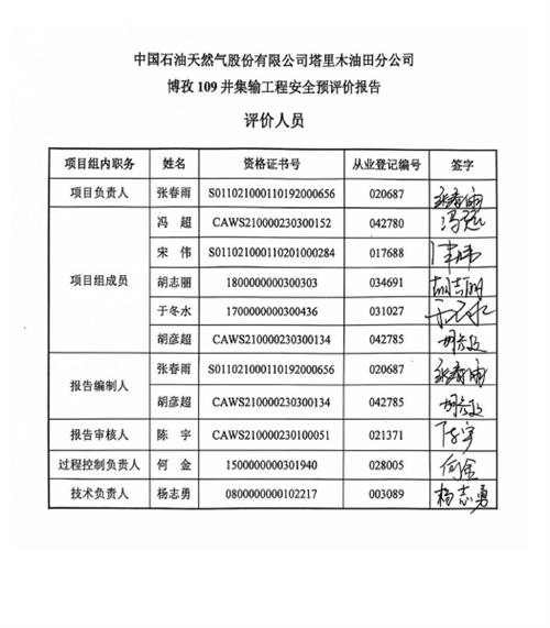 中國石油天然氣股份有限公司塔里木油田分公司博孜109井集輸工程安全預評價報告 |
