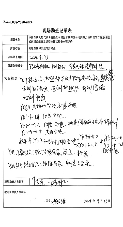 中國石油天然氣股份有限公司塔里木油田分公司塔里木油田英買力油田玉東7區塊白堊系巴西改組開發調整項目安全預評價報告