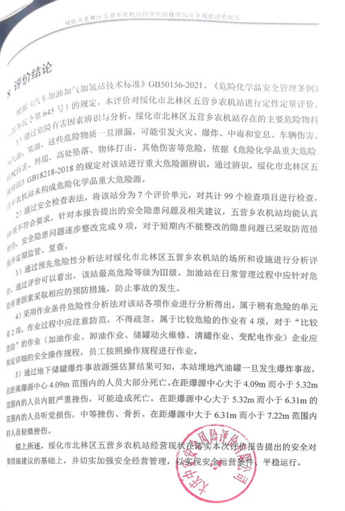 綏化市北林區五營鄉農機站經營現狀在落實本次評價報告提出的安全對策措施建議的基礎上,并切實加強安全經營管理,以實現安全運營條件、平穩運行。 |