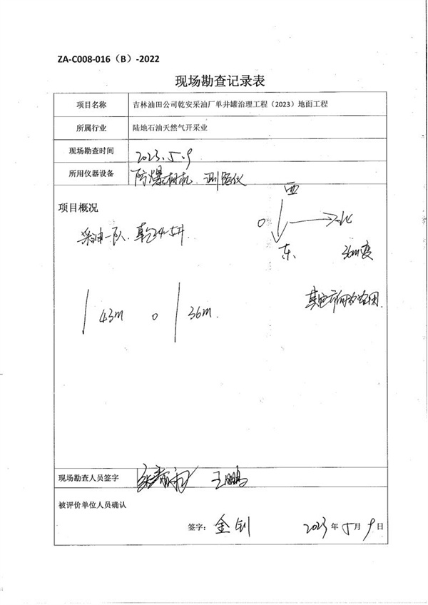 吉林油田單井罐治理工程(2023年)乾安采油廠地面工程補(bǔ)充方案安全預(yù)評(píng)價(jià)