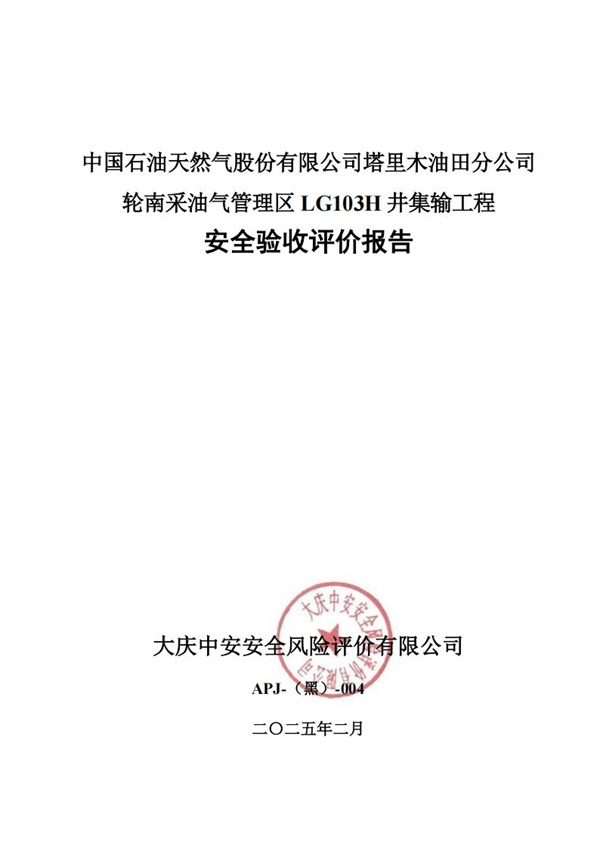 中國石油天然氣股份有限公司塔里木油田分公司輪南采油氣管理區LG103H井集輸工程 安全驗收評價