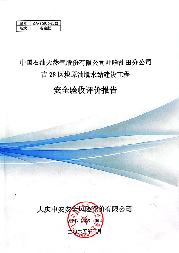 中國石油天然氣股份有限公司吐哈油田分公司吉28區塊原油脫水站建設工程安全驗收評價報告