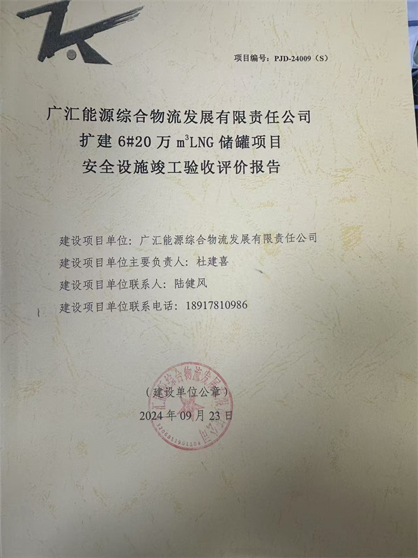 廣匯能源綜合物流發(fā)展有限責(zé)任公司擴(kuò)建6#20萬(wàn)m3LNG儲(chǔ)罐項(xiàng)目安全設(shè)施竣工驗(yàn)收評(píng)價(jià)報(bào)告