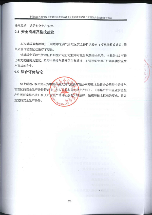 中國石油天然氣股份有限公司塔里木油田分公司塔中采油氣管理區(qū)安全現(xiàn)狀評價報告