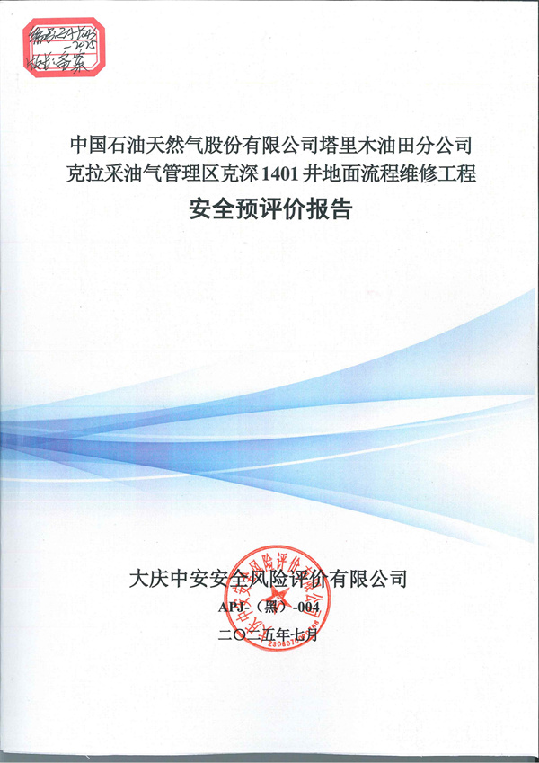 中國(guó)石油天然氣股份有限公司塔里木油田分公司克拉采油氣管理區(qū)克深1401井地面流程維修工程安全預(yù)評(píng)價(jià)報(bào)告