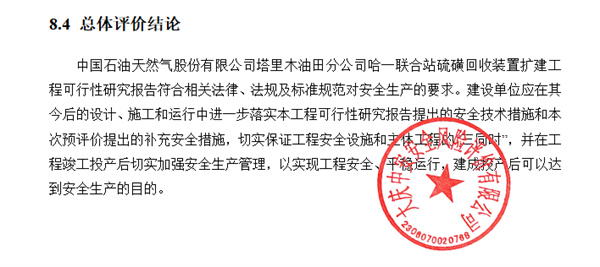 中國石油天然氣股份有限公司塔里木油田分公司哈一聯(lián)合站硫磺回收裝置擴(kuò)建工程安全預(yù)評(píng)價(jià) |