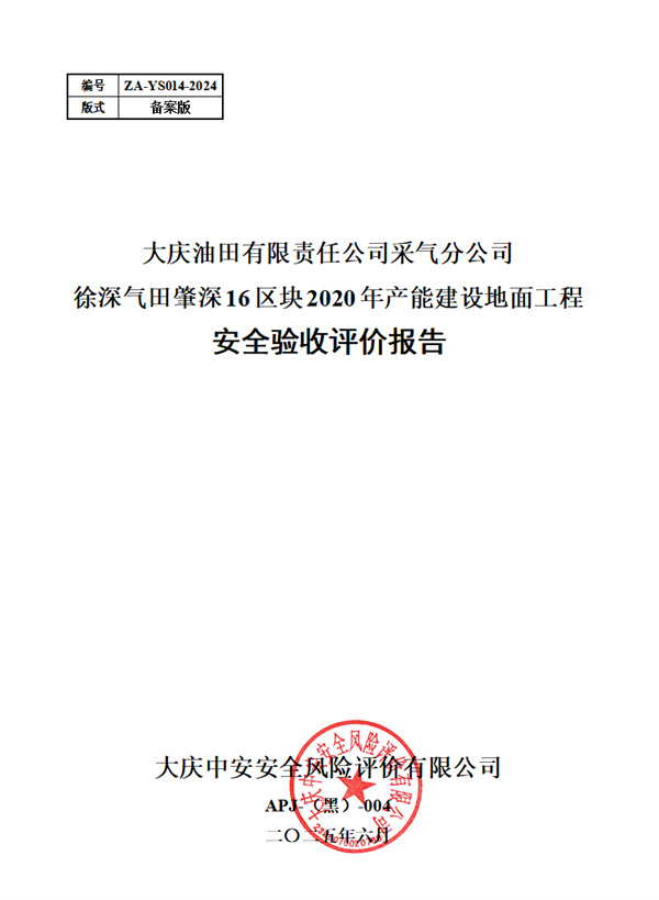 大慶油田有限責(zé)任公司采氣分公司徐深氣田肇深16區(qū)塊2020年產(chǎn)能建設(shè)地面工程 安全驗(yàn)收評(píng)價(jià)
