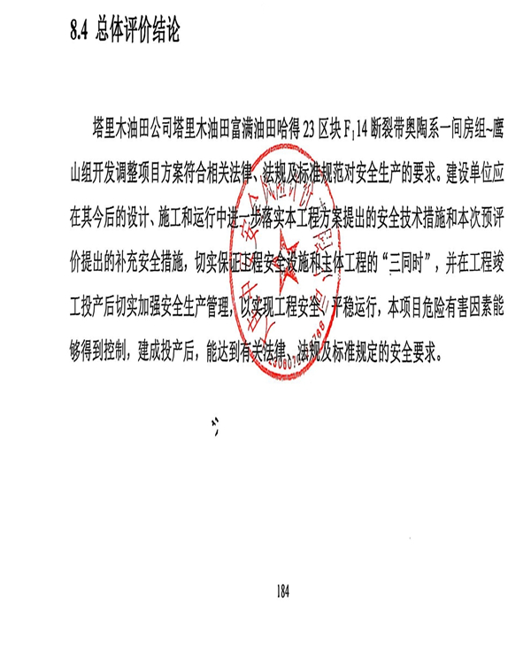塔里木油田公司塔里木油田富滿油田哈得23區塊FI14斷裂帶奧陶系一間房組~鷹山組開發調整項目安全預評價報告