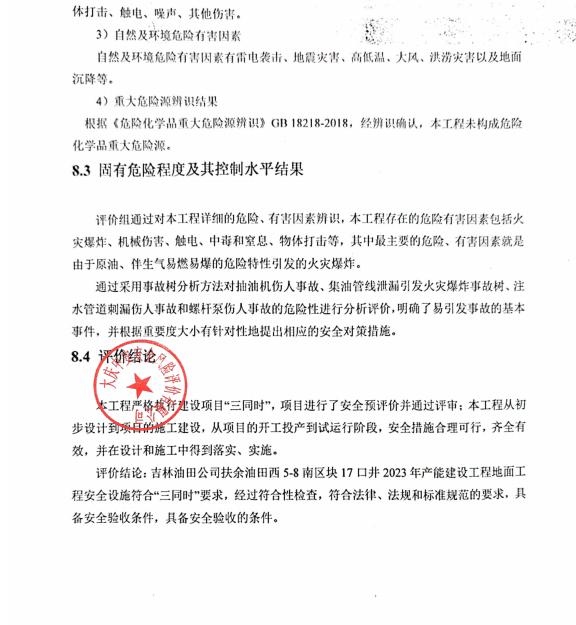 吉林油田公司扶余油田西5-8南區(qū)塊17口井2023年產(chǎn)能建設(shè)工程地面工程安全設(shè)施符合“三同時(shí)”要求,經(jīng)過符合性檢查,符合法律、法規(guī)和標(biāo)準(zhǔn)規(guī)范的要求,具備安全驗(yàn)收條件,具備安全驗(yàn)收的條件。 |