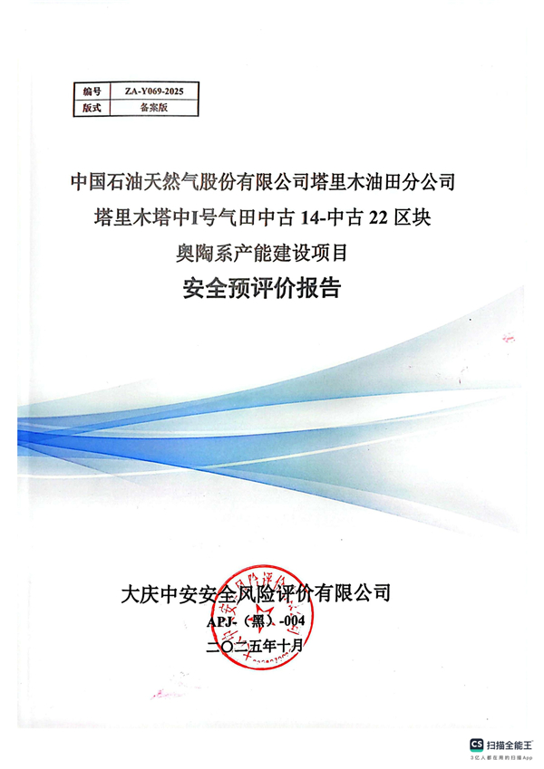 中國石油天然氣股份有限公司塔里木油田分公司塔里木塔中Ⅰ號氣田中古14-中古22區(qū)塊奧陶系產(chǎn)能建設(shè)項目安全預(yù)評價報告