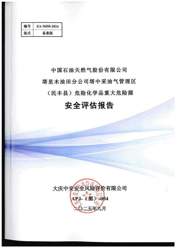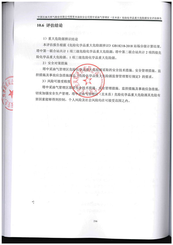 中國石油天然氣股份有限公司塔里木油田分公司塔中采油氣管理區(qū)危險化學(xué)品重大危險源評估報告 |