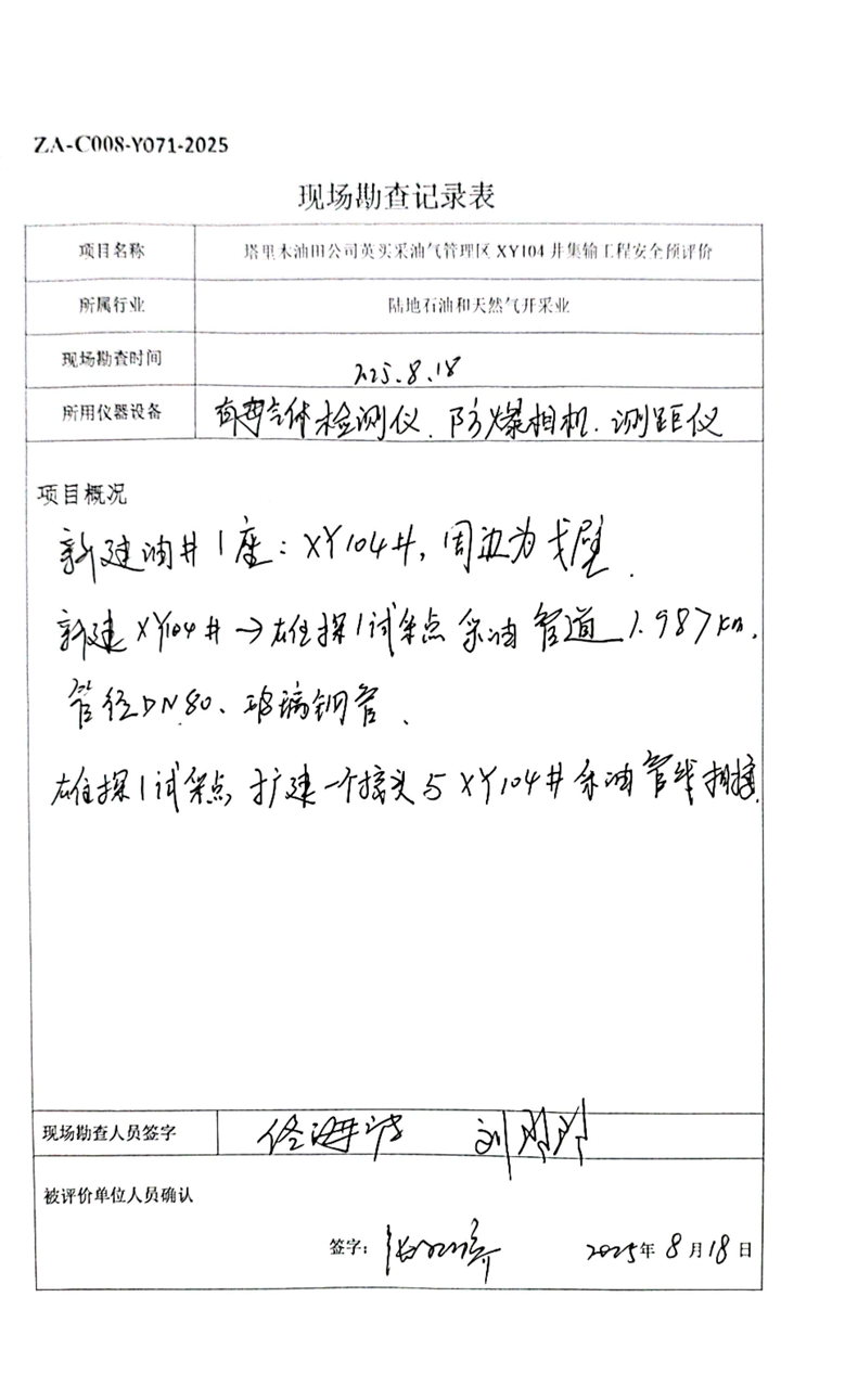 塔里木油田公司英買采油氣管理區XY104井集輸工程安全預評價報告 |