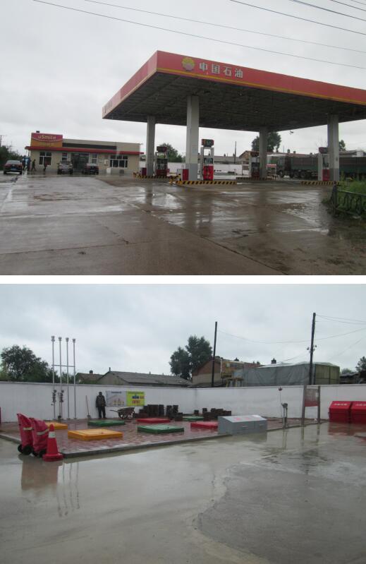 (1)拆除現有罐區,原有鋼罐檢測合格后吊裝,新上非承重SF罐4臺(E92#1臺30m3,E95#1臺30m3,柴油2臺30m3;新建1座5孔卸油口箱,設置非承重成品防滲操作井及配套井蓋;所有工藝管線拆除,重新敷設;加油管線采用導靜電雙層熱塑性塑料管:雙層管加滲漏檢測,其余工藝管道采用20#無縫鋼管;設置卸油油氣回收及分散式加油油氣回收系統。 (2)利舊2臺四槍雙油品自吸泵加油機,2臺雙槍單油品自吸泵加油機(汽油槍帶油氣回收功能);采用混凝土防滲加油機底槽;新建4座中油標準加油島,新設8套防撞柱。 (3)新上緊急切斷系統,卸油口人體靜電釋放儀、靜電報警器上新、罐區新建做接地。罐區設滲漏檢測系統、聲光報警系統、液位儀整套新設(含探棒); |