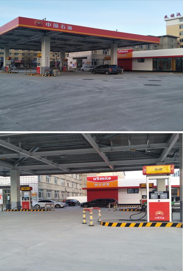 新建行車道下直埋承重FF罐區1座,設置FF雙層油罐5座,30m3×2(1汽1柴)、40m3×3(2汽1柴),新建承重成品防滲操作井及配套承重井蓋10套,新建FF儲罐承重成品防滲監測井及配套承重井蓋5套,新建1座6孔成品卸油口箱,新建一層站房1座,拆除原有罩棚,原址新建型鋼罩棚一座。 |