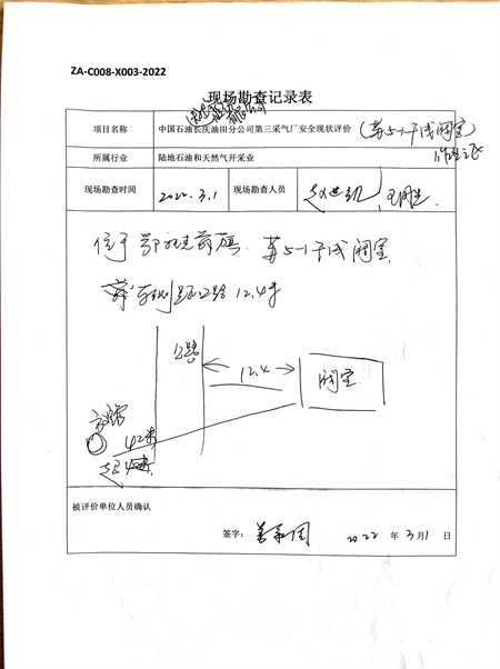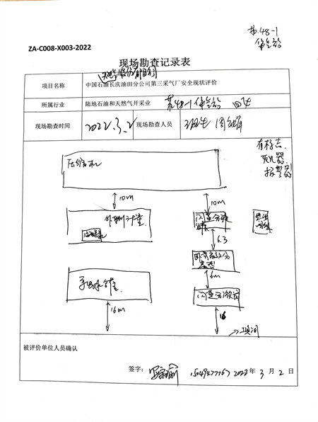 采氣井場、集氣站場、閥室、清管站、天然氣處理廠現場勘查 |