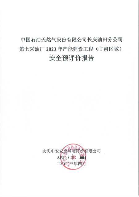 中國石油天然氣股份有限公司長慶油田分公司第七采油廠2023年產(chǎn)能建設(shè)工程(甘肅區(qū)域)安全預(yù)評價安全評價報告