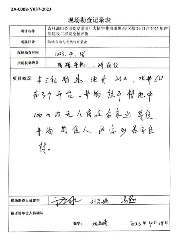 吉林油田公司乾安采油廠大情字井油田黑69區塊29口井2023年產能建設工程安全評價報告