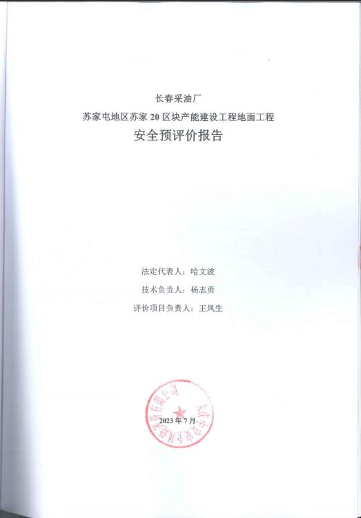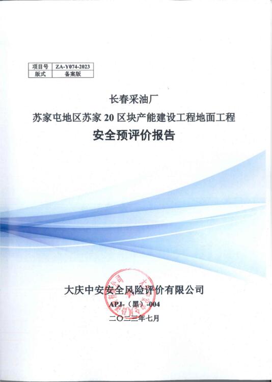 長春采油廠蘇家屯地區蘇家20區塊產能建設工程地面工程安全預評價報告 |