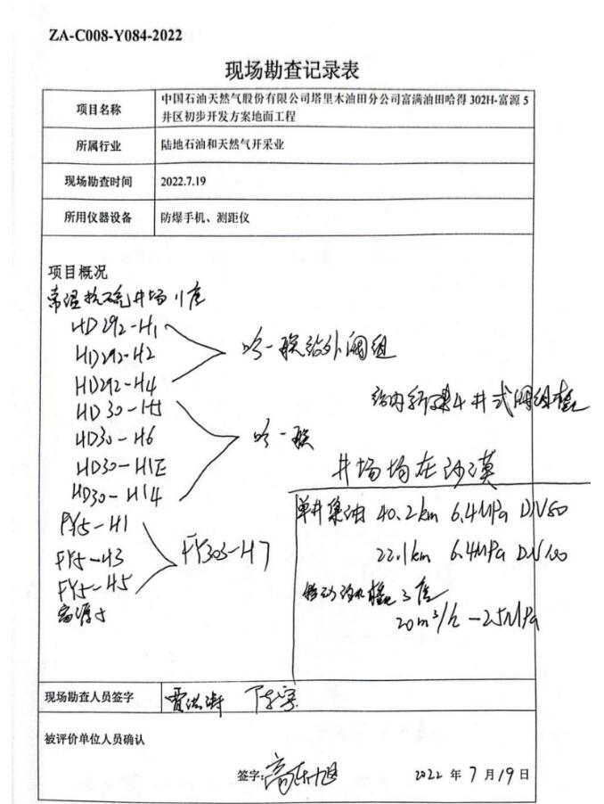 中國石油天然氣股份有限公司塔里木油田分公司富滿油田哈得302H-富源5井區初步開發方案地面工程安全評價報告