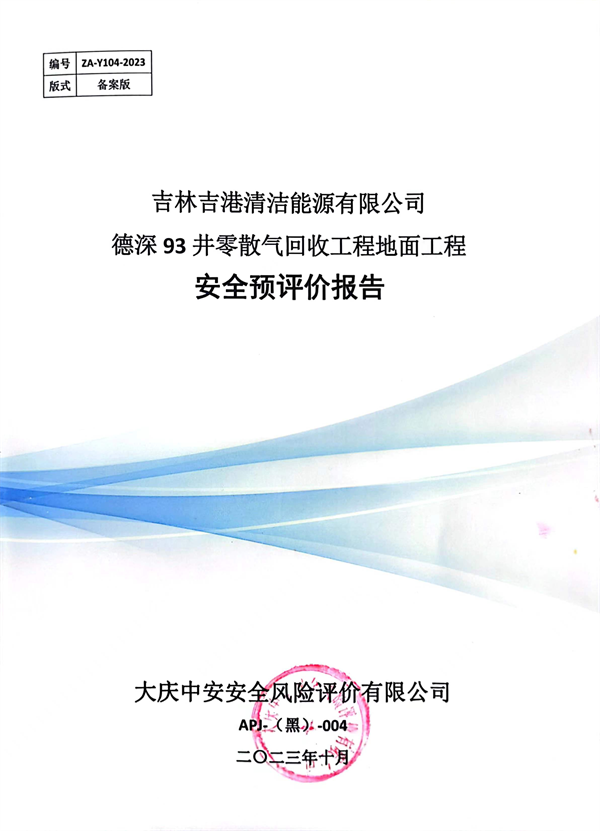 吉林吉港清潔能源有限公司德深93井零散氣回收工程地面工程安全預評價