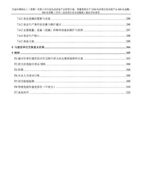 艾迪科精細化工(常熟)有限公司引進先進設備產品轉型升級,等量替換生產2500噸抗氧化劑及副產品600噸鹽酸、965噸苯酚(自用)技改項目 安全設施竣工驗收評價報告