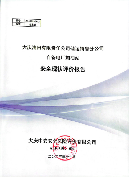 大慶油田有限責任公司儲運銷售分公司自備電廠加油站安全現狀評價報告 |