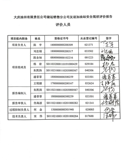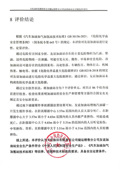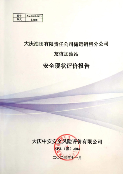 大慶油田有限責任公司儲運銷售分公司友誼加油站安全現狀評價報告