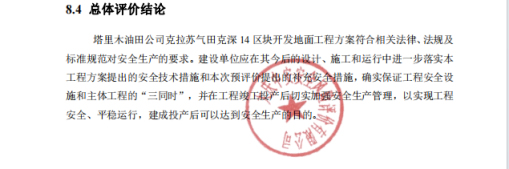 塔里木油田公司克拉蘇氣田克深14區塊開發地面工程安全預評價報告 |