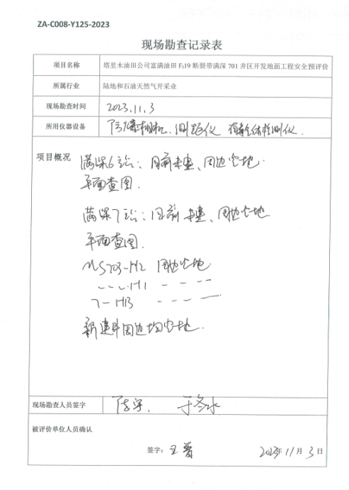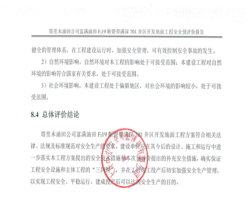 塔里木油田公司富滿油田FI19斷裂帶滿深701井區(qū)開發(fā)地面工程安全驗收評價報告 |