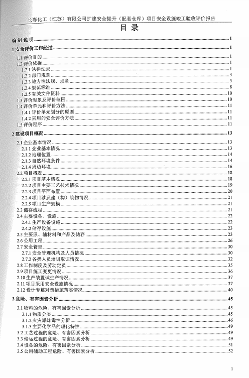 長春化工(江蘇)有限公司擴建安全提升(配套倉庫)項目安全設施竣工驗收評價報告 |