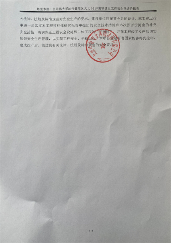 塔里木油田公司博大采油氣管理區大北16井集輸建設工程安全預評價報告