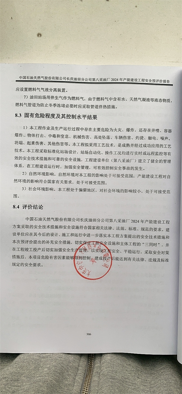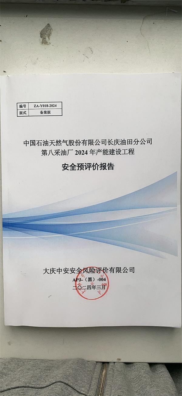 中國石油天然氣股份有限公司長慶油田分公司第八采油廠2024年產能建設工程安全預評價報告 |