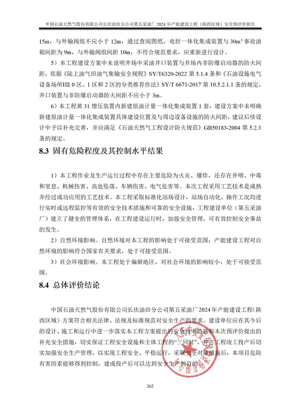 中國石油天然氣股份有限公司長慶油田分公司第五采油廠2024年產能建設工程(陜西區域)安全預評價 |