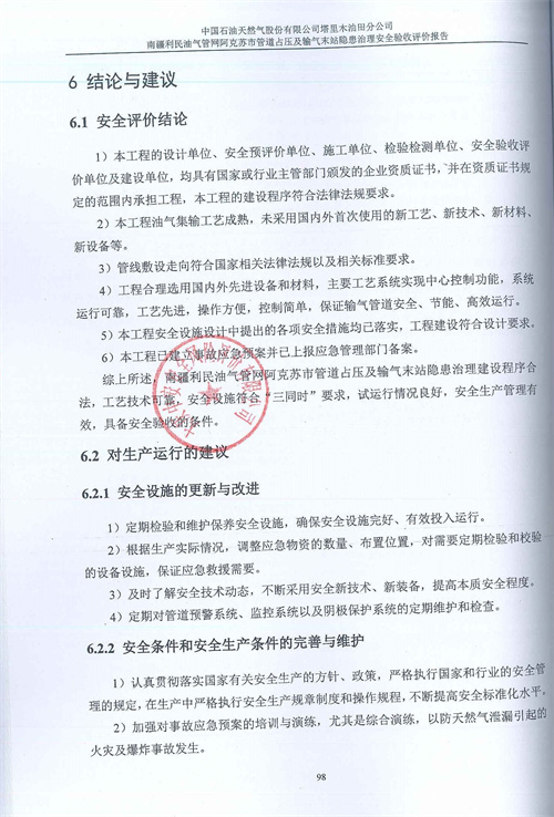 中國石油天然氣股份有限公司塔里木油田分公司南疆利民油氣管網阿克蘇市管道占壓及輸氣末站隱患治理安全驗收評價報告 |