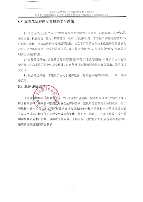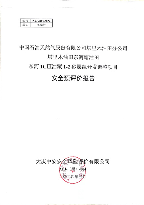 中國石油天然氣股份有限公司塔里木油田分公司塔里木油田東河塘油田東河1CⅢ油藏1-2砂層組開發調整項目安全預評價報告 |