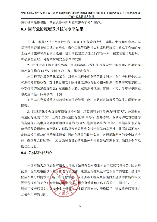 中國(guó)石油天然氣股份有限公司塔里木油田分公司塔里木油田雄英氣田雄英1區(qū)塊寒武系下丘里塔格組試采項(xiàng)目安全預(yù)評(píng)價(jià)報(bào)告 |