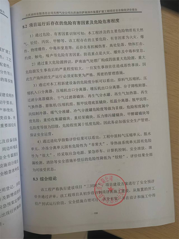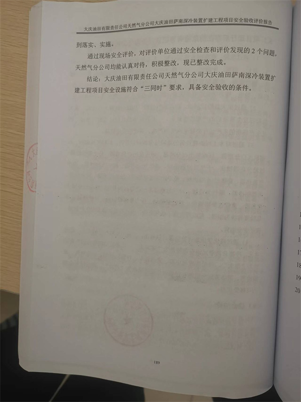 大慶油田有限責任公司天然氣分公司大慶油田薩南深冷裝置擴建工程項目安全驗收評價報告 |